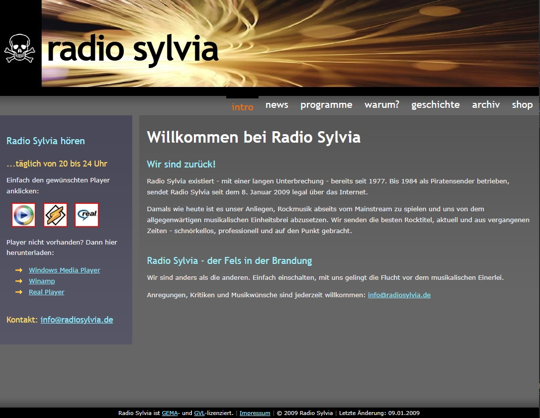2007 begannen wir mit ersten vagen Überlegungen, Radio Sylvia legal zu reaktivieren, ohne dass allerdings konkrete Planungen folgten. Erst im September 2008 starteten die Vorbereitungen, und nach einer Testphase begannen am 8. Januar 2009 reguläre Sendungen im Internet.